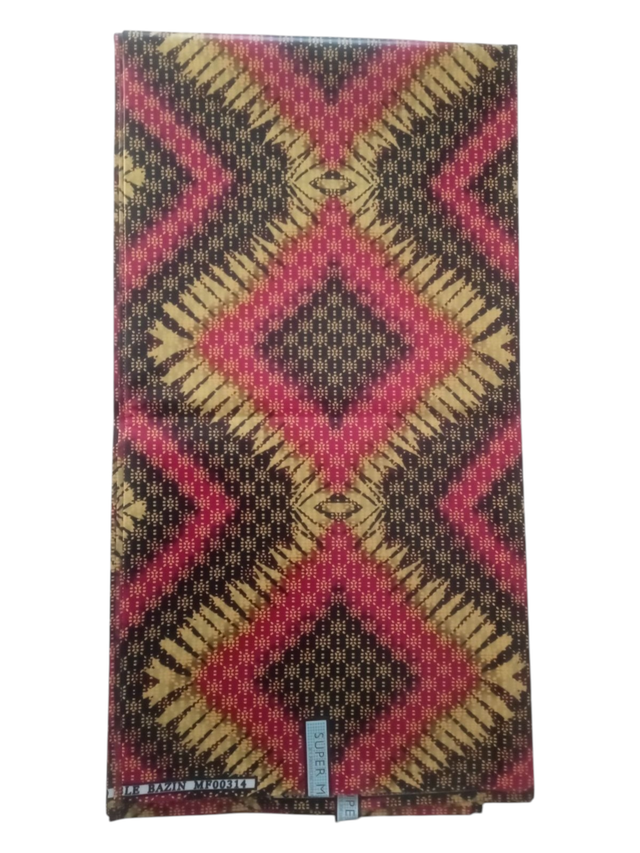 Ses losanges dynamiques et ses teintes profondes mêlant magenta, noir et doré créent un visuel puissant, structuré et très expressif.